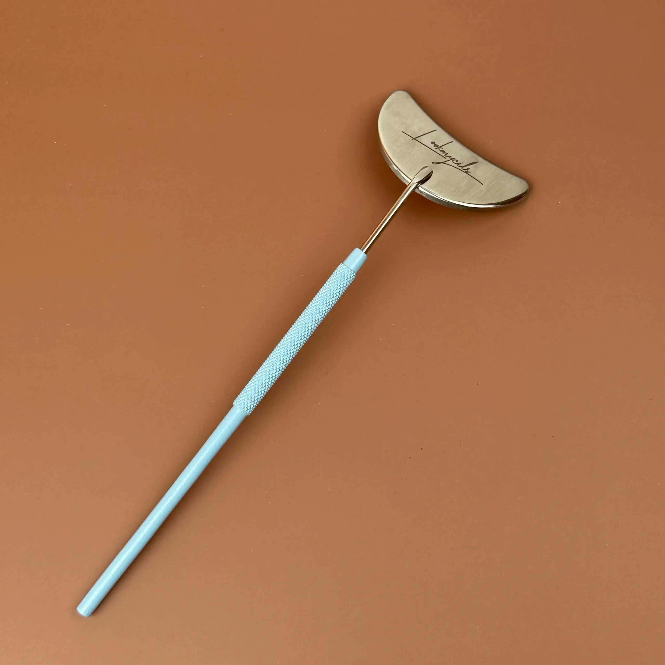Il permet, grâce à son en forme de croissant ou de lune, de bien visualiser votre travail vu d’en bas. Ainsi, vous pouvez observer plus facilement et sans effort les éventuels manques ou défauts. Et les corriger au besoin, avec un remover et le matériel adapté.